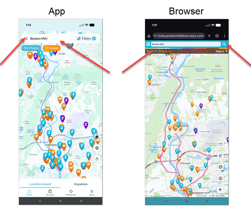 To search for shops in a different location, use the Search tool (the magnifying glass icon at the top of the screen). Type in an address or zip/postal code to search for shops in that location.