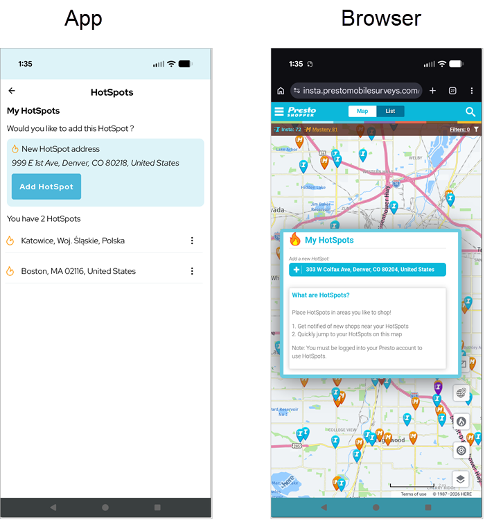 Presto can send you daily shop emails of shops in your area. All notifications are based on hotspots that you set up in places where you're interested in shopping. To set up a hotspot:
