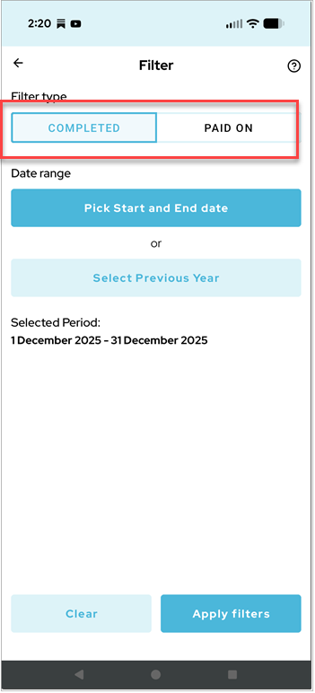 ...or by date (completed or paid):